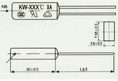 KW型溫度保護(hù)是由碟形高靈敏雙金屬元件、動(dòng)觸頭、靜觸片、固定底版、外殼和耐溫導(dǎo)線等組成。工作時(shí)雙金屬元件處于自由狀態(tài),動(dòng)觸頭與靜片閉合,電路導(dǎo)通。當(dāng)使用電器因故發(fā)熱,溫度上升到該產(chǎn)品額定動(dòng)作溫度值時(shí),雙金屬元件受熱產(chǎn)生內(nèi)應(yīng)力而迅速動(dòng)作,推開動(dòng)觸頭,使觸點(diǎn)斷開,切斷電源,電器停止工作,從而起到過熱保護(hù)作用。當(dāng)被保護(hù)電器溫度下降到該產(chǎn)品的額定復(fù)位溫度值時(shí),雙金屬元件恢復(fù)到初如原狀態(tài)動(dòng)觸點(diǎn)閉合,電器恢復(fù)工作。該產(chǎn)品具有電阻小、感溫快、動(dòng)作迅速、可靠、體積小等優(yōu)點(diǎn)。